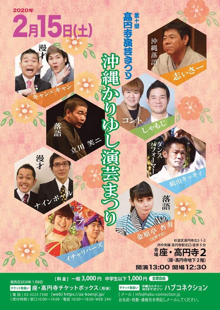 高円寺「沖縄かりゆし演芸まつり」2020 ニュース X Facebook コピー 2019.12.152025.03.06 さあ、皆様。 2020年の、旧正月明けの初笑いは。 毎年恒例の、高円寺「沖縄かりゆし演芸まつり」でよろしくお願いします。